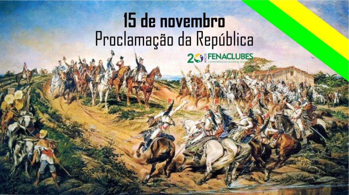 15 de novembro: feriado nacional 14 nov 2022 | Notícias Gerais Compartilhe Twitter Facebook Google+ Em função do feriado nacional em celebração à Proclamação da República, não haverá expediente na sede da FENACLUBES na terça-feira, 15 de novembro. Compartilhe Twitter Facebook Google+