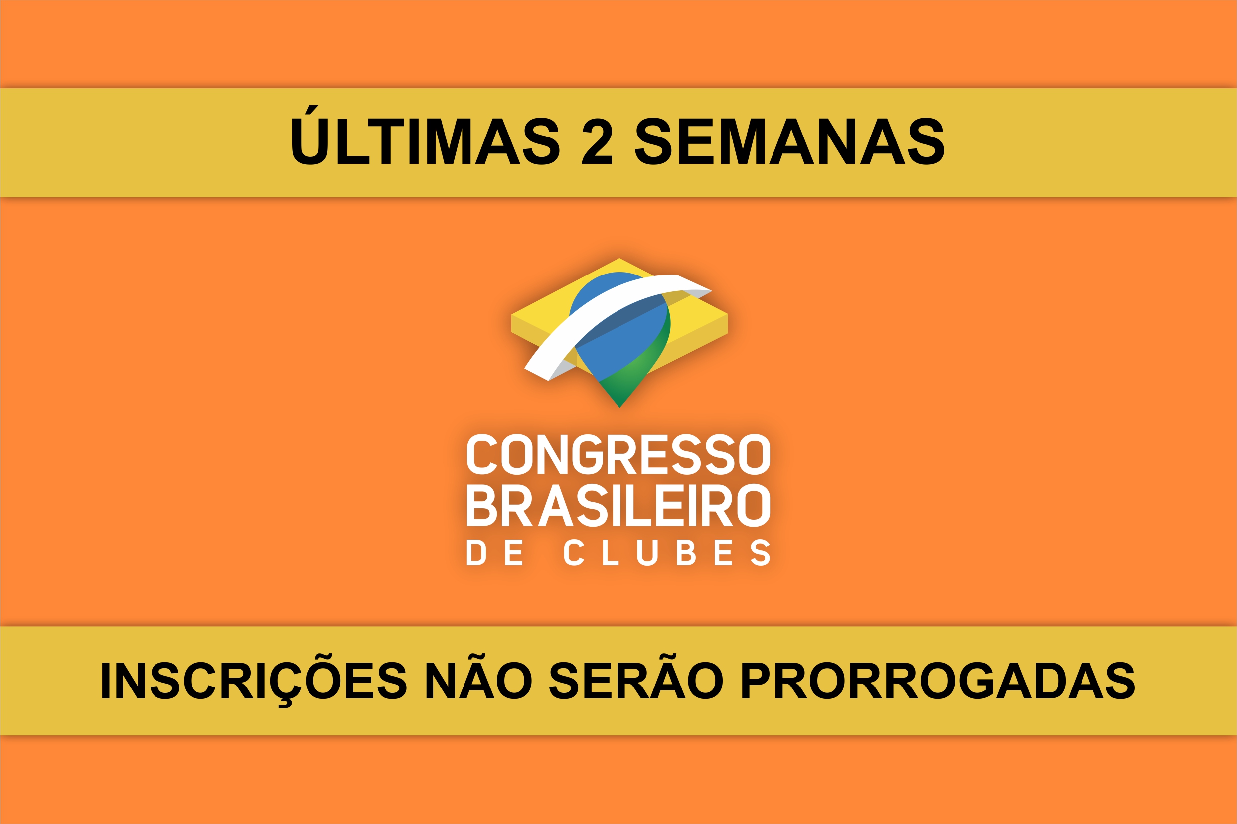 Faltam apenas duas semanas para o encerramento das inscrições do Congresso Brasileiro de Clubes 2025 e, conforme já informamos anteriormente, o prazo não será prorrogado! Então, se você ainda não garantiu participação no mais tradicional evento do nosso segmento, AGORA É A HORA!