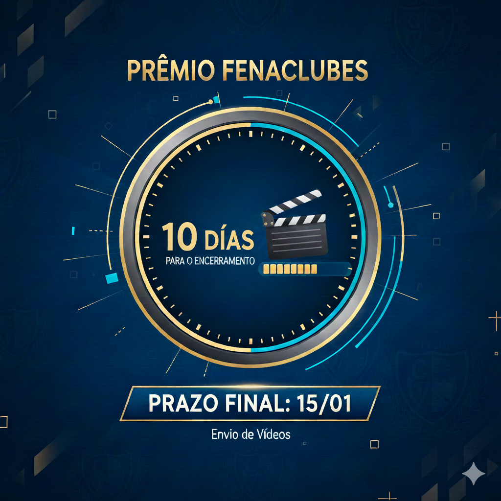 Atenção! O prazo para o envio dos vídeos para o Prêmio FENACLUBES está chegando ao fim. O Clube tem até o dia 15 de janeiro para mostrar a excelência do seu Clube e enviar o vídeo para garantir a participação no “Oscar” do segmento clubístico.