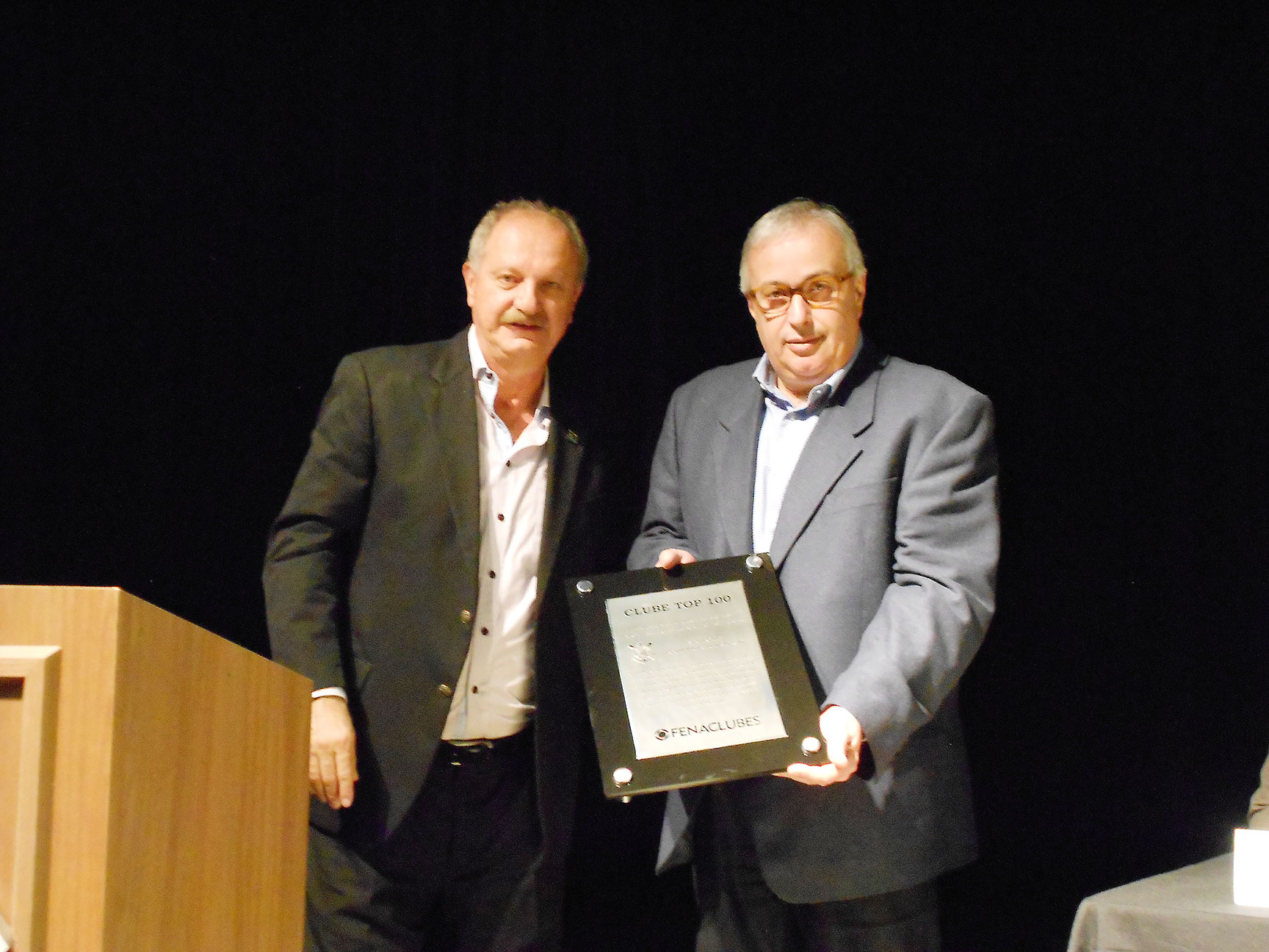 O presidente do Sport Club Corinthians Paulista – SP, Roberto de Andrade, recebeu das mãos do presidente da Federação Nacional dos Clubes – FENACLUBES, Arialdo Boscolo, a placa de homenagem “Clube TOP 100”. A iniciativa reconhece, entre os clubes associados à Federação, aqueles que se destacam por suas atividades na sociedade e são referência para os demais. “Isso é um motivo de muito orgulho para nós da diretoria, a quem eu quero agradecer bastante, a todos diretores que fizeram parte deste processo”, ressaltou Andrade.