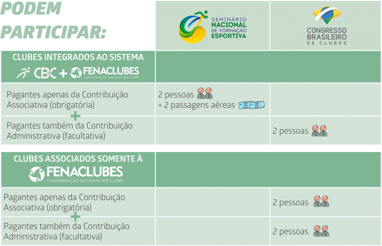 Vale relembrar que apenas os Clubes Associados que aderirem e se mantiverem adimplentes com as mensalidades desta contribuição terão acesso a eventos e benefícios especiais, tais como:
