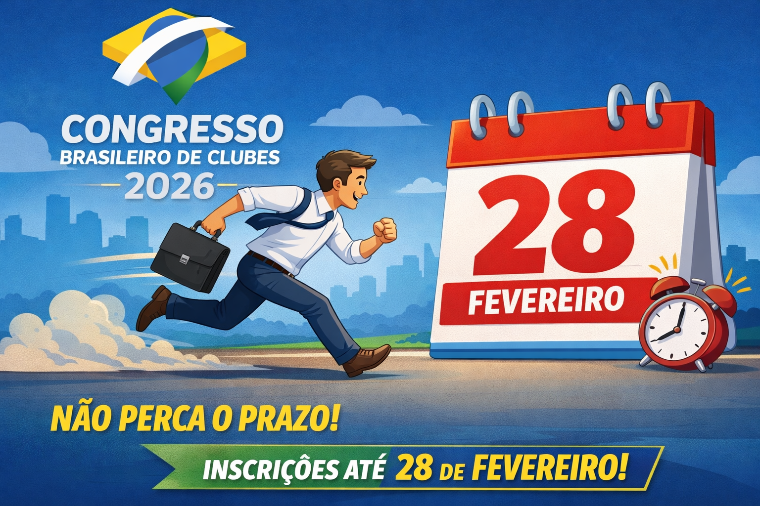 Os clubes têm até o dia 28 de fevereiro para garantir sua participação no Congresso Brasileiro de Clubes 2026, que será realizado de 23 a 26 de abril de 2026, no Royal Palm Plaza, em Campinas/SP.