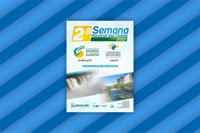 Assim como no ano passado, a Semana será composta pela realização sequenciada do Seminário Nacional de Formação Esportiva (31/10 a 2/11) e do Congresso Brasileiro de Clubes (3 a 6/11), no Hotel Bourbon Cataratas, em Foz do Iguaçu/PR.