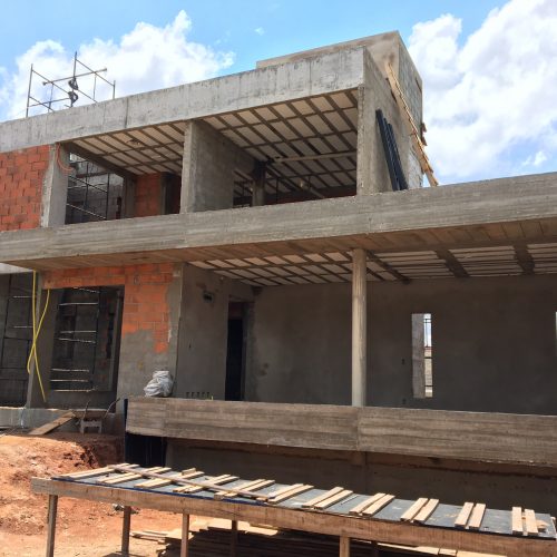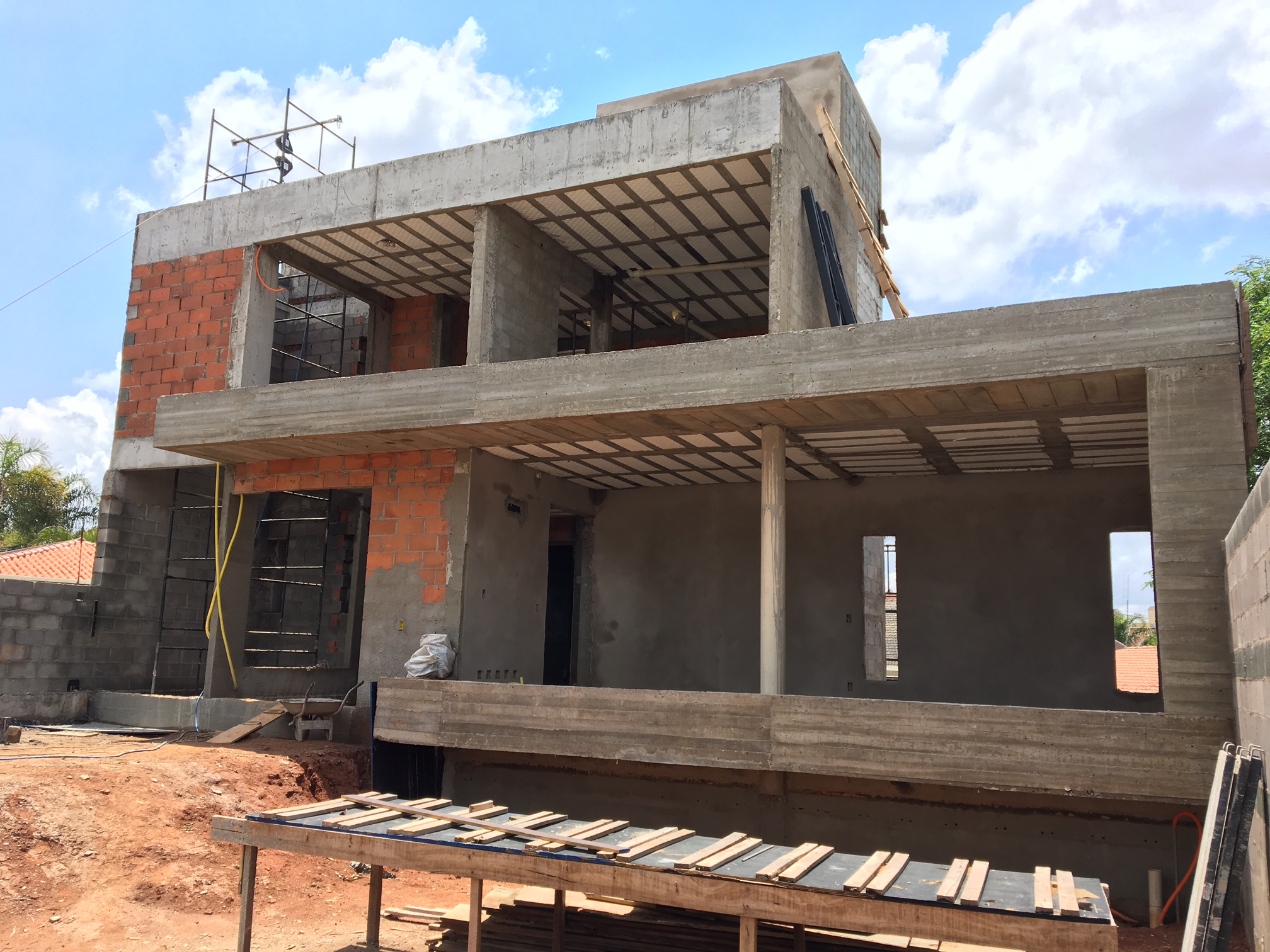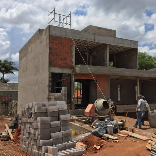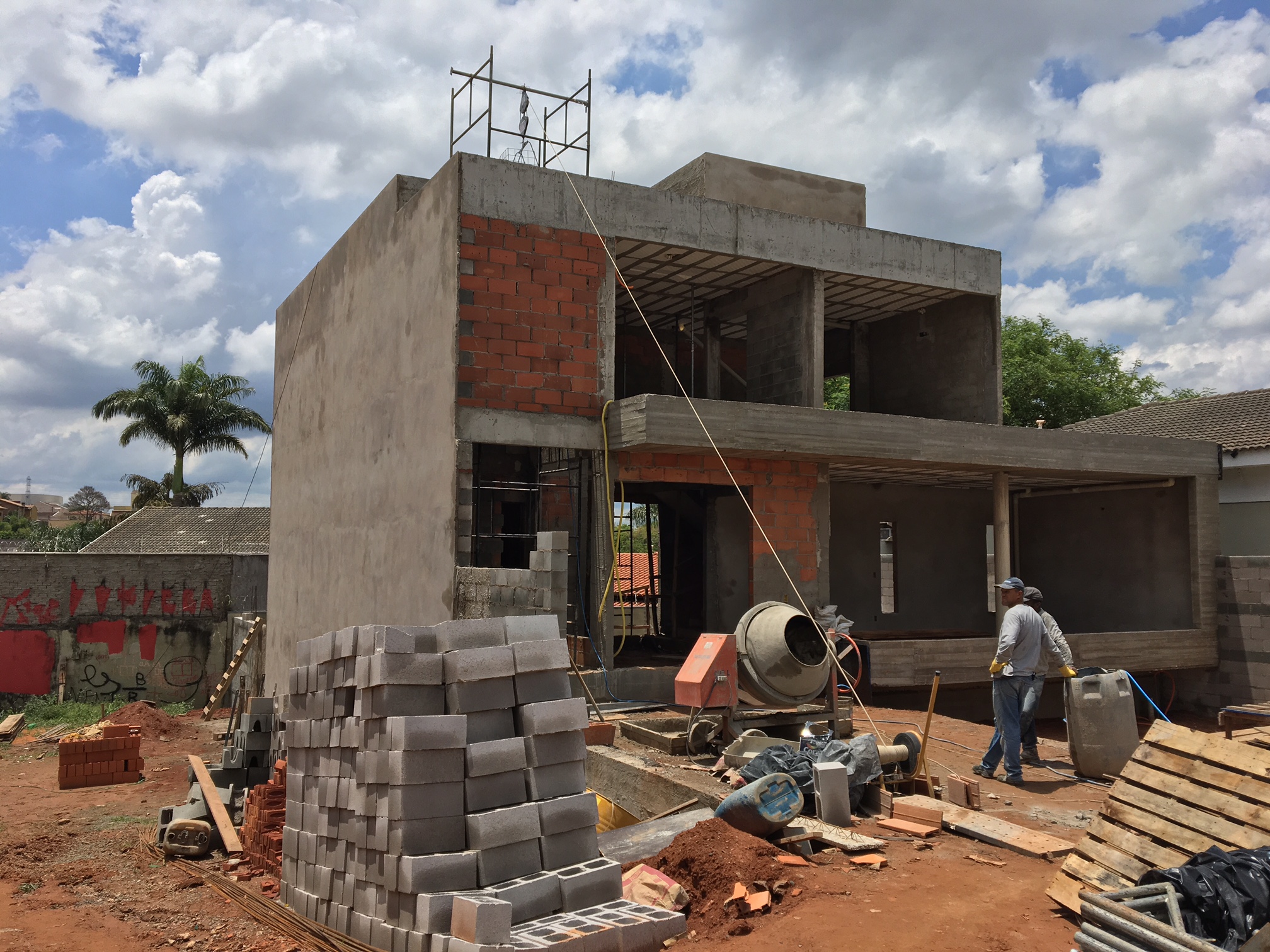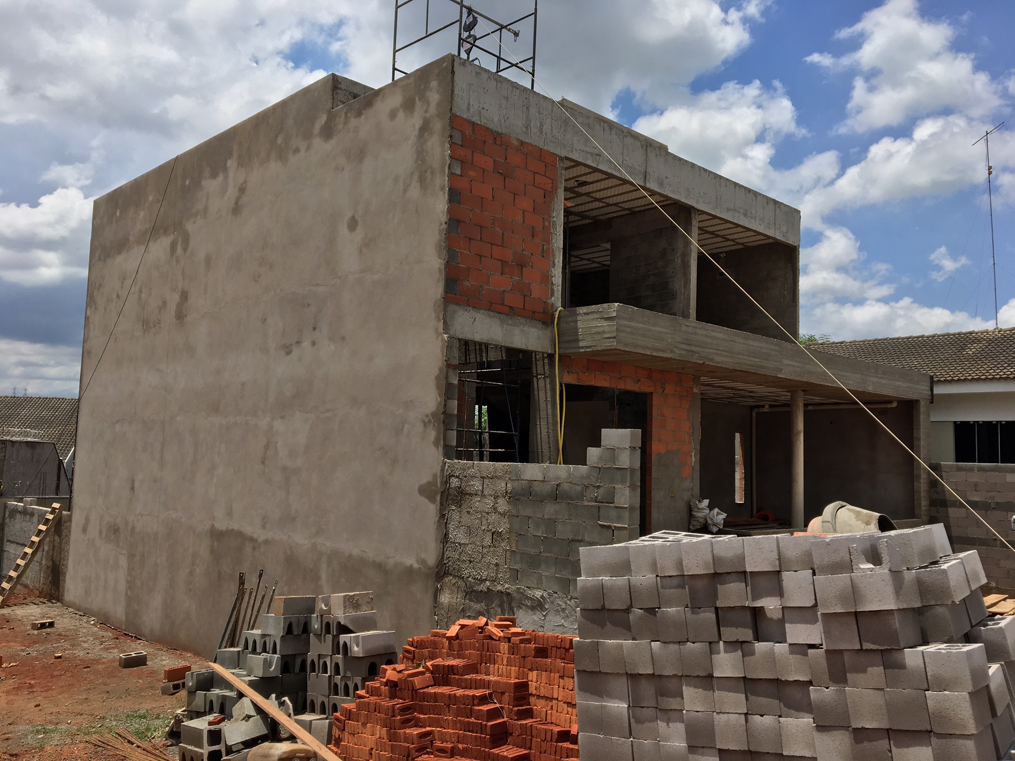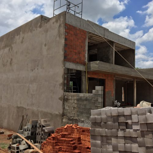 No quinto mês das obras foram executados os serviços de alvenaria das platibandas e da caixa d’água, reboque interno nas platibandas e no volume da caixa d’água, chapisco no pavimento superior, embutimento das instalações no superior, execução da escada, contrapiso no térreo, instalação de infraestrutura para ar condicionado, colocação de batentes e contramarcos de alumínio, além do reboque interno nos pavimentos inferior e térreo.