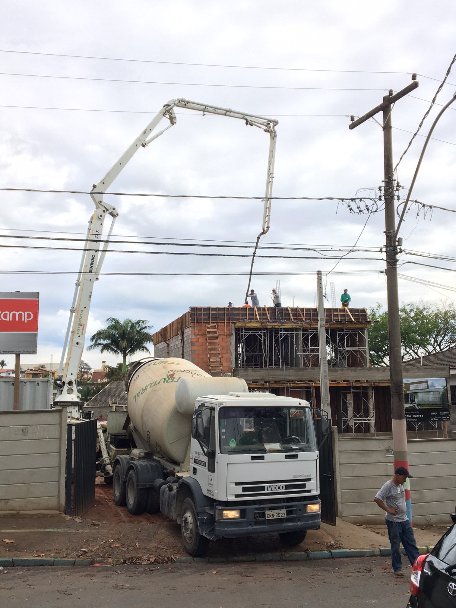 No último mês foram executados os serviços de alvenaria do pavimento superior com vergas e contravergas, cobertura com ferragem e escoramento, instalações hidráulicas e elétricas na laje de cobertura, concretagem completa da laje de cobertura, chapisco nos pavimentos inferior e térreo e embutimento das instalações nos pavimentos inferior e térreo.