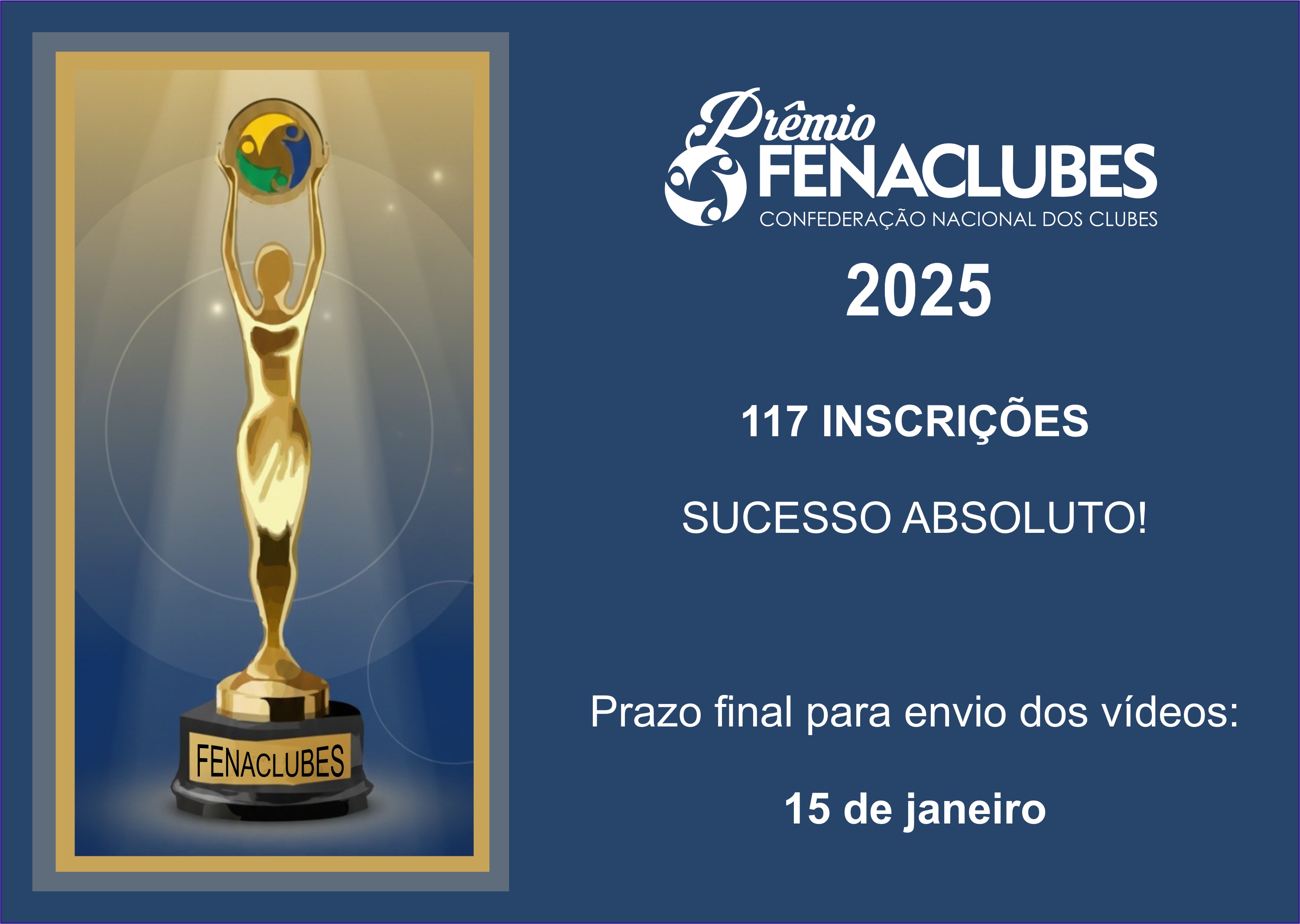É com grande entusiasmo que celebramos o sucesso da fase de inscrições para o aguardado Prêmio FENACLUBES! Alcançamos a marca notável de 117 inscrições de Clubes das cinco regiões do país, demonstrando o alto nível de engajamento e a qualidade das iniciativas desenvolvidas pelo segmento.