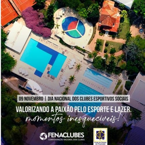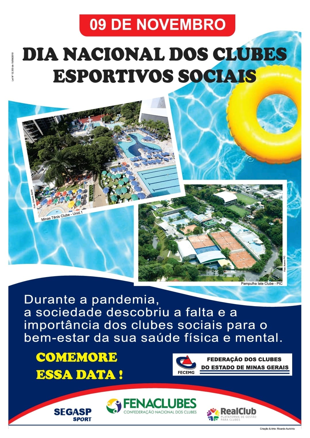 9 de novembro é o Dia Nacional dos Clubes Esportivos Sociais! Com o objetivo de ampliar a repercussão da data junto aos Clubes e seus associados, a Confederação Nacional dos Clubes – FENACLUBES está promovendo um concurso especial que premiará as melhores artes de divulgação da data feitas pelos Clubes em suas redes sociais!